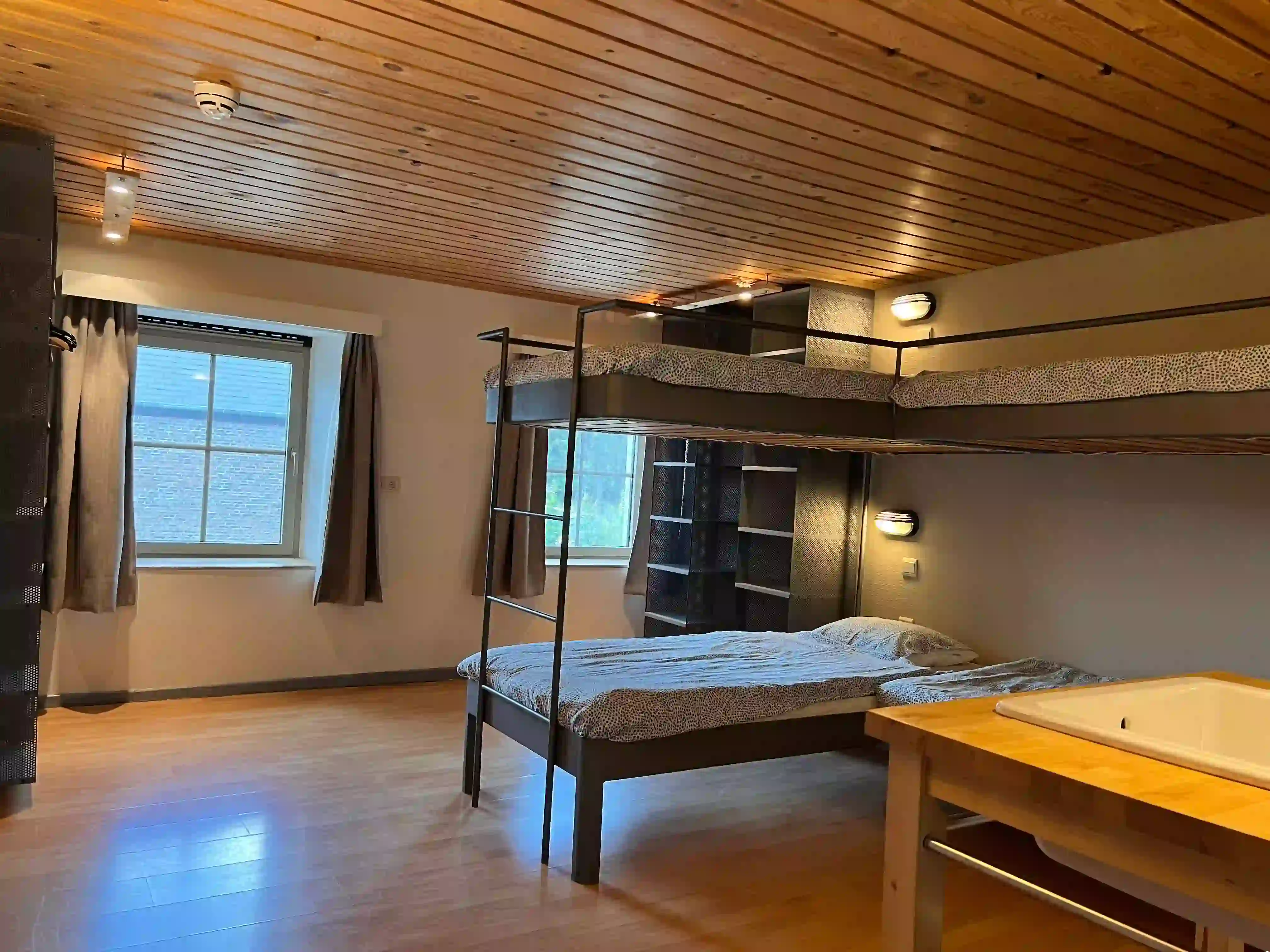 - Chambre à coucher avec lit double, 1 lit superposé et lavabo