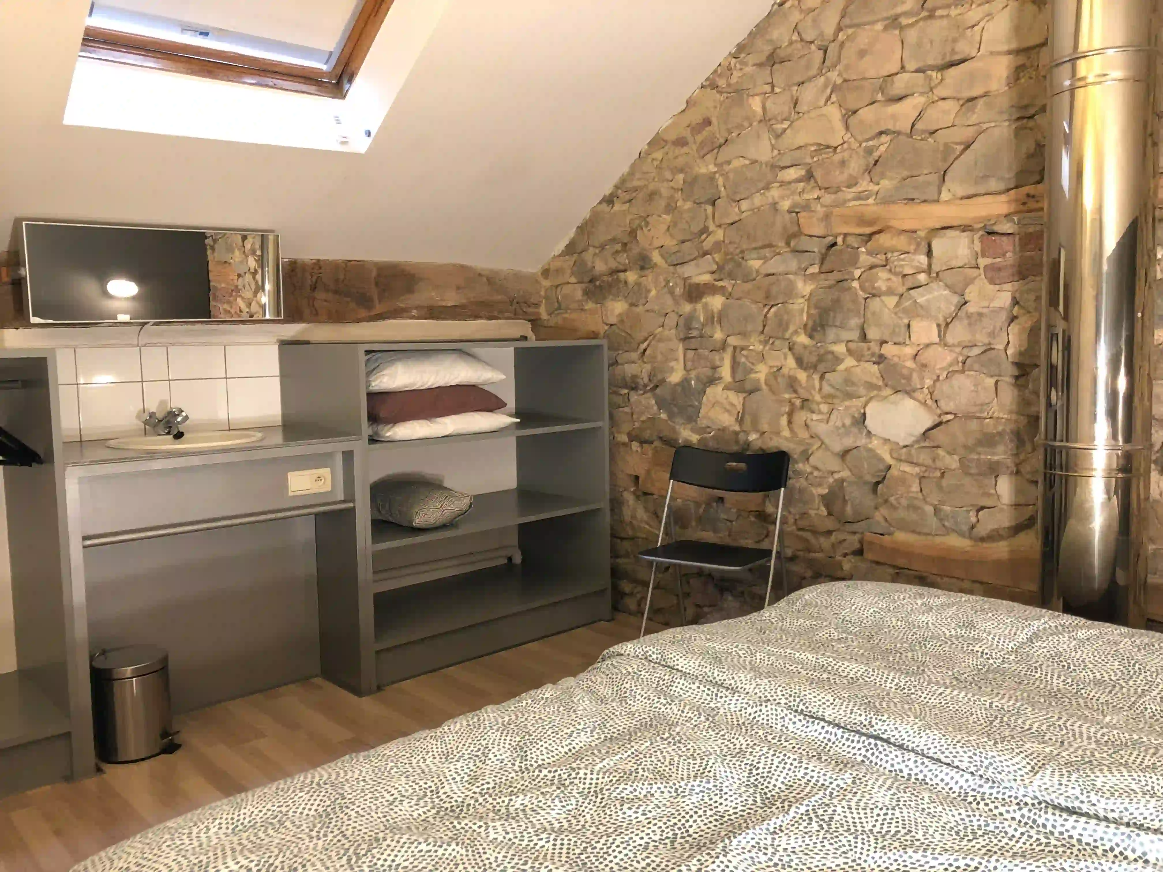 - 1 slaapkamers met dubbel bed, 2 stapelbedden en lavabo